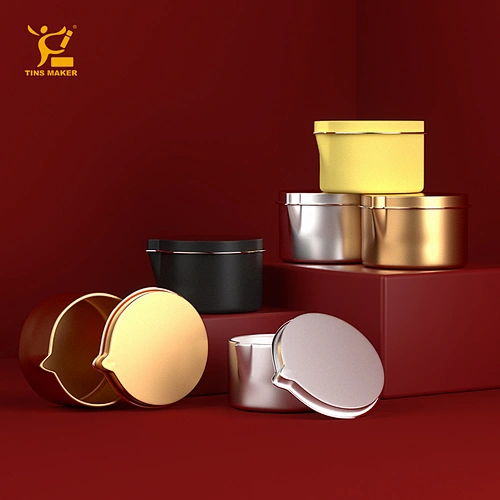 wholesale metal white colored 1.5oz 2oz 4oz feet candlejar with pouring spout candle tins box container swith lid in bulk tin Read More »